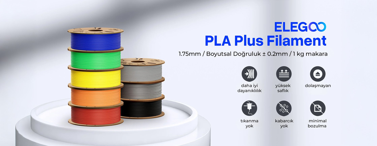 Elegoo PLA Plus, 3D baskı projelerinizde hem sağlamlık hem de güvenilirlik arayanlar için tasarlanmış geliştirilmiş bir PLA formülüdür. Birinci sınıf çevre dostu malzemelerden üretilen bu filament, tutarlı ve kokusuz bir baskı deneyimi sunar.