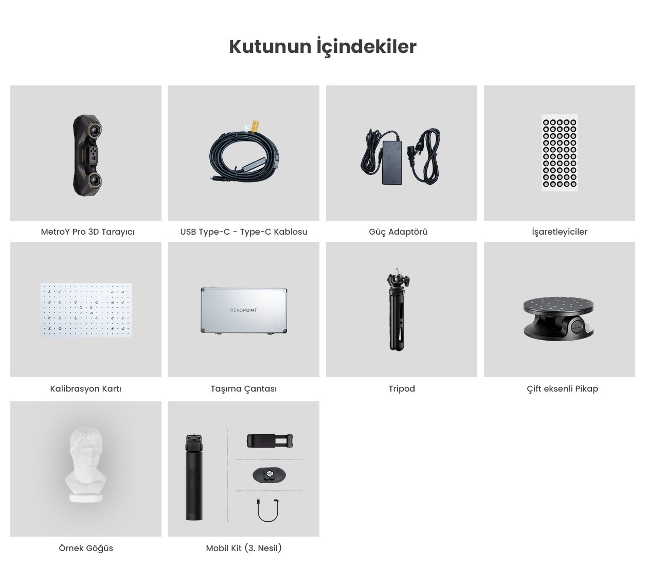 MetroY elde serbest tarama için optimize edilirken; MetroY Pro, iki ek full-field yapılandırılmış ışık modu ve Auto Turntable desteğiyle tam otomatik iş akışlarına güç katar.